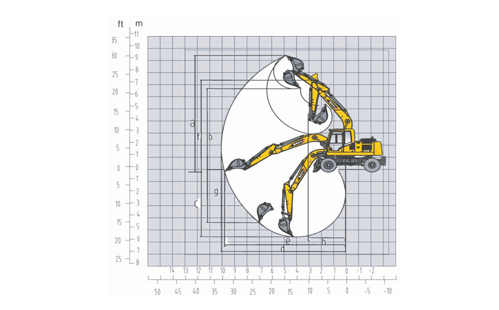 - Максимальный радиус копания
